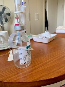 Due to COVId protocols, I’ll be in quarantine for the first week I’m here. Meals and jars of drinking water are left outside my door. Machines and IV drips are wheeled in and out of my room by nurses covered from head to toe. The hours go by slowly in between, and I lay in my bed in my small, tidy room to read a book or write an email or watch the clouds outside my window only to fall asleep, over and over again.